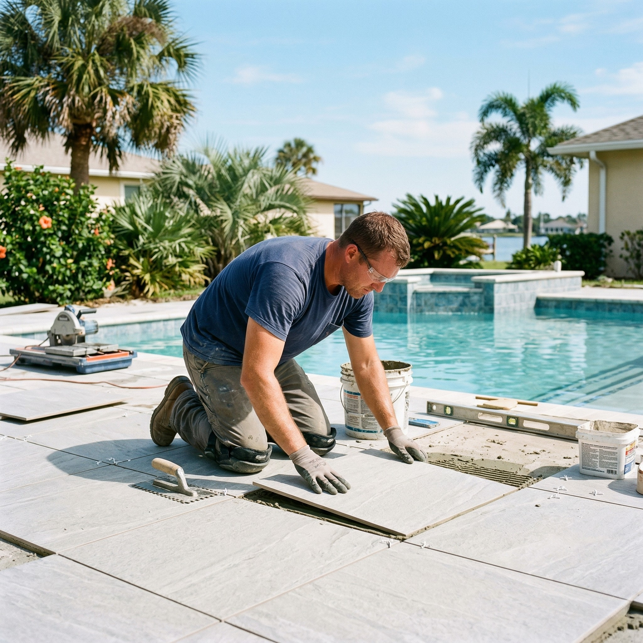 Looking for a pool deck tile contractor in Palm Coast who specs slip-resistant material rated for Florida's UV and salt air — and doesn't cut corners on the base preparation?