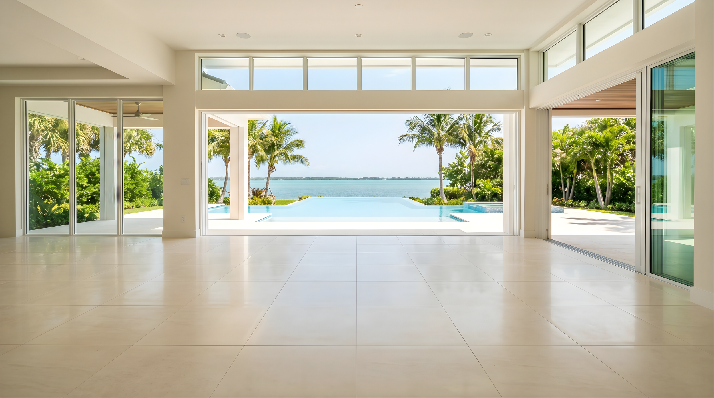 Vero Beach's Treasure Coast location brings both the humidity of the Indian River Lagoon and the salt air exposure of the barrier island — creating a combination that puts specific demands on both interior and exterior tile and flooring. For pool decks and outdoor living spaces in Vero Beach's upscale residential market, we recommend UV-stable porcelain slab countertops, travertine pavers with penetrating sealer, and marine-grade hardware and caulk at all exterior transitions. Interior installations follow the same Florida slab protocols — moisture barriers, proper acclimation, and exterior-rated setting materials for any areas with outdoor exposure.